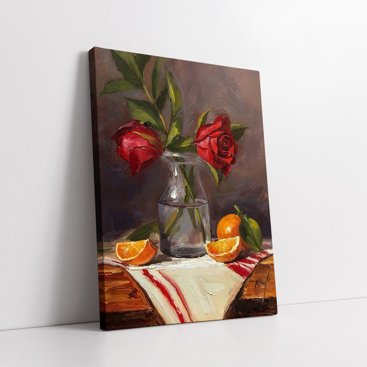 Classic Roses & Citrus Still Life Knife Work Style (Single Panel) Digital Painting Wall Art