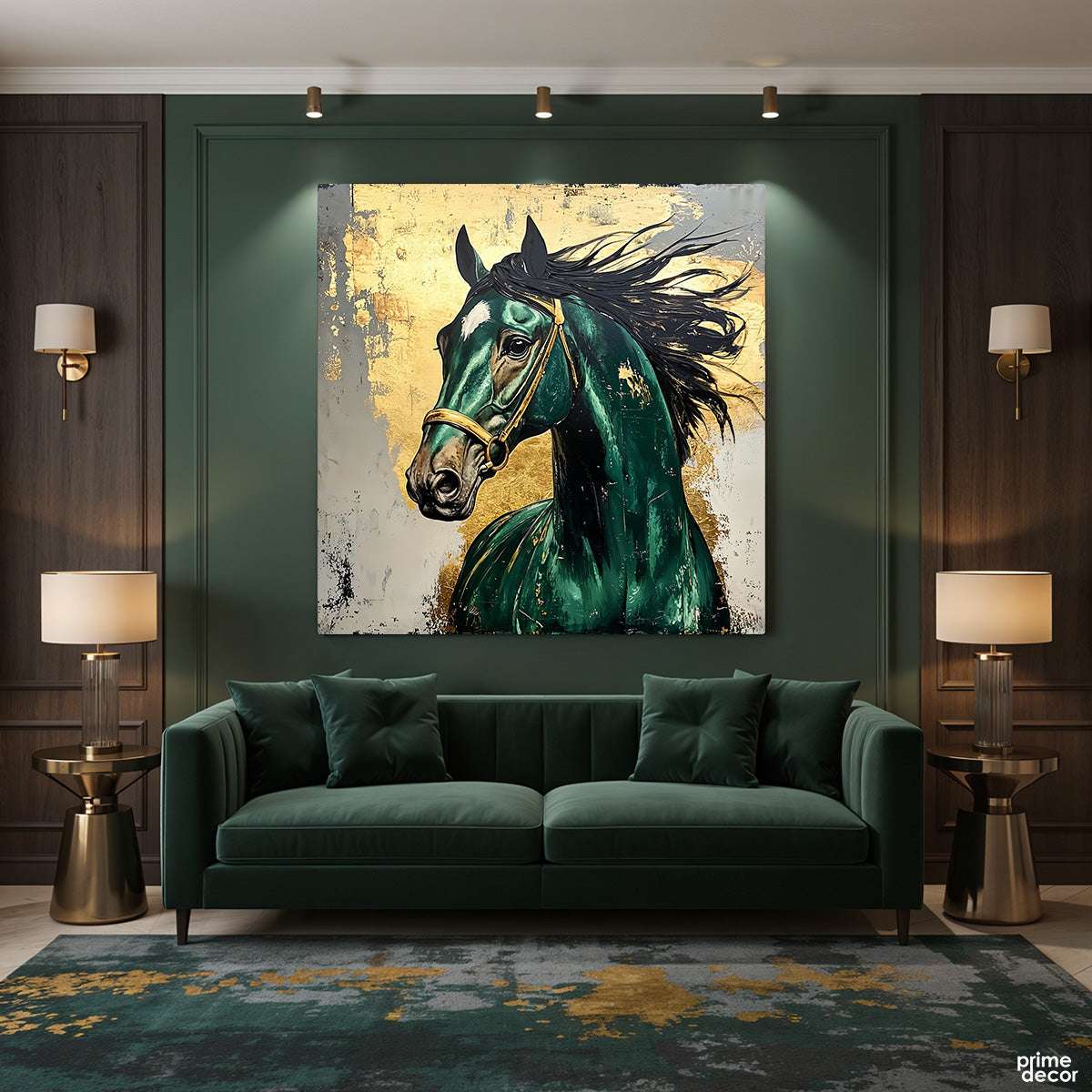 The Horse with a Golden Mane Digital Painting (Single Panel) Square Wall Art