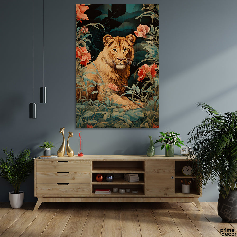 Tiger Staring Look From The Flowers (Single Panel) Nature Wall Art