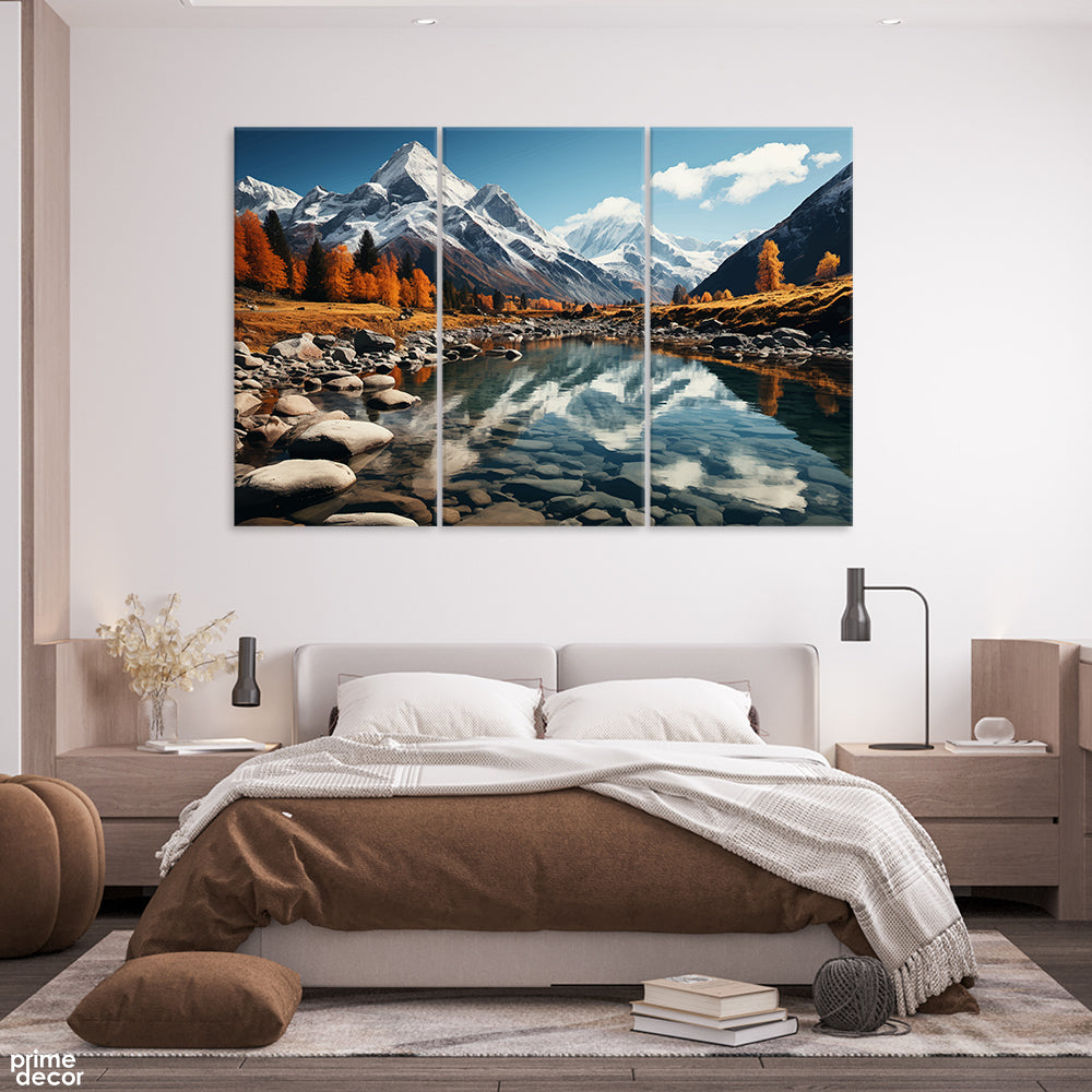 Beautiful Artwork Of Majesty Mountains With Lake (3 Panel) Nature Wall Art