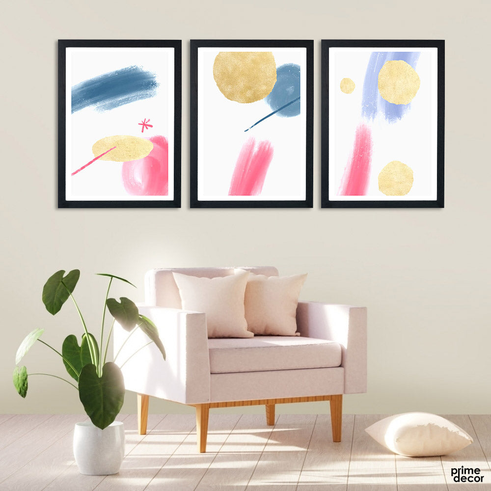 Pink & Blue Collection (3 Panel) Abstract Wall Art