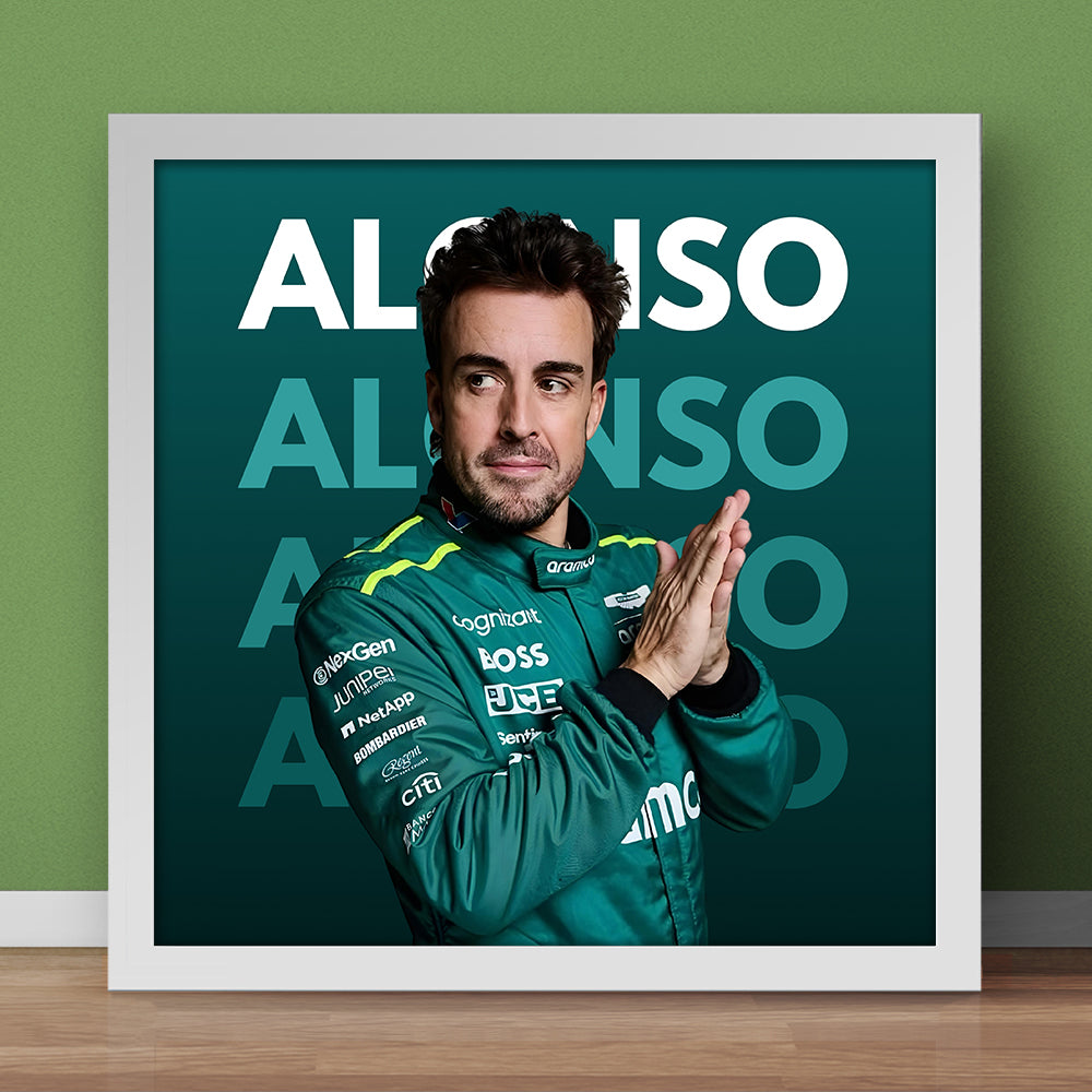 Fernando Alonso F1 Formula Racing with Typography Background | Sports Poster Wall Art