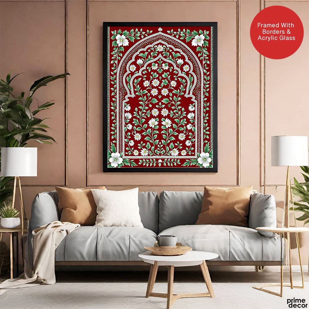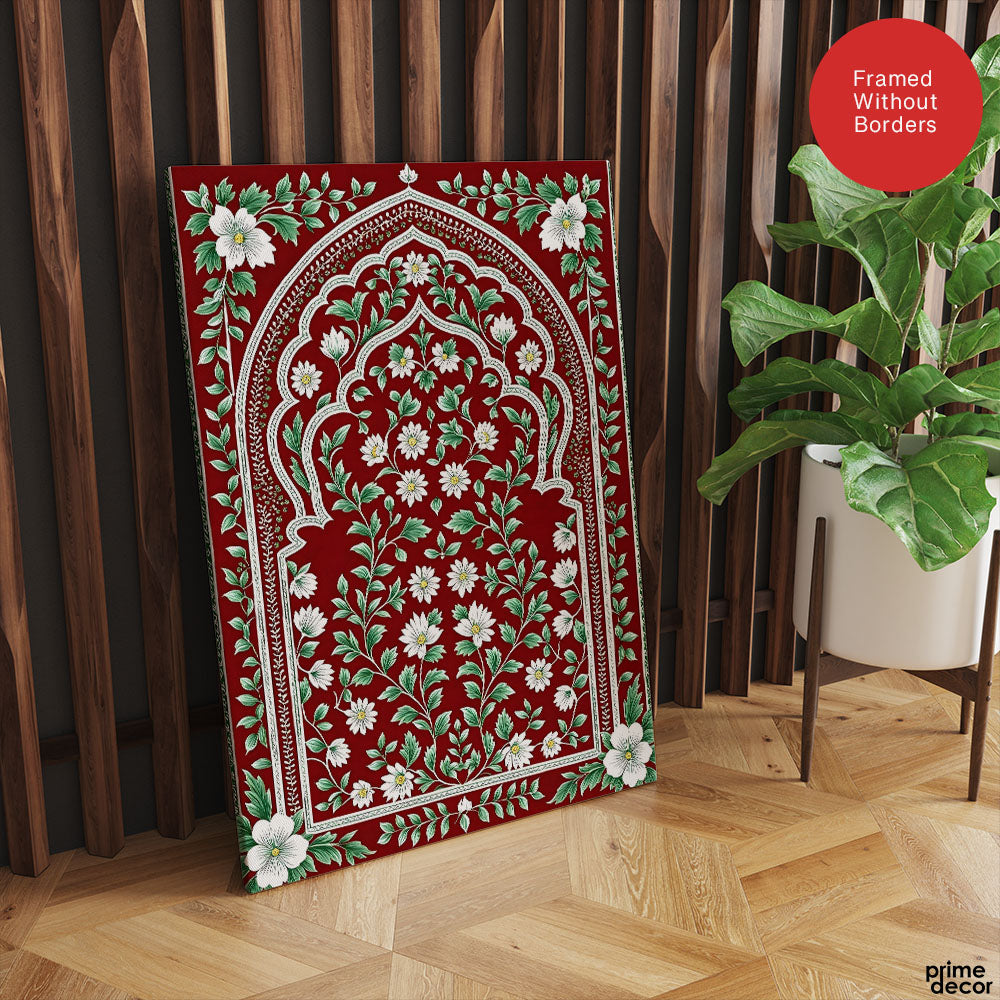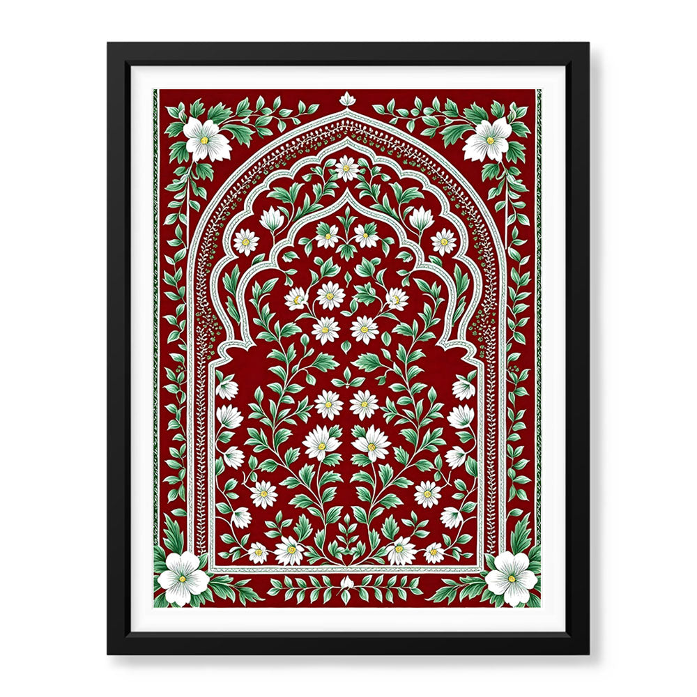 Aesthetic Mughal Era White & Green Floral Artwork | Abstract Historical Artwork #00589