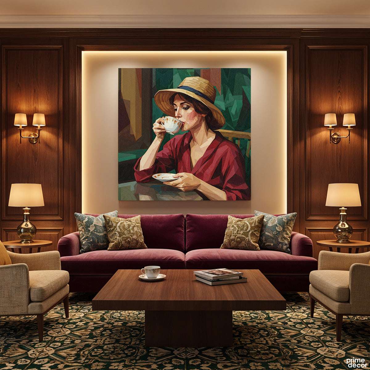 Afternoon Tea in the Garden Digital Painting (Single Panel) Square Wall Art