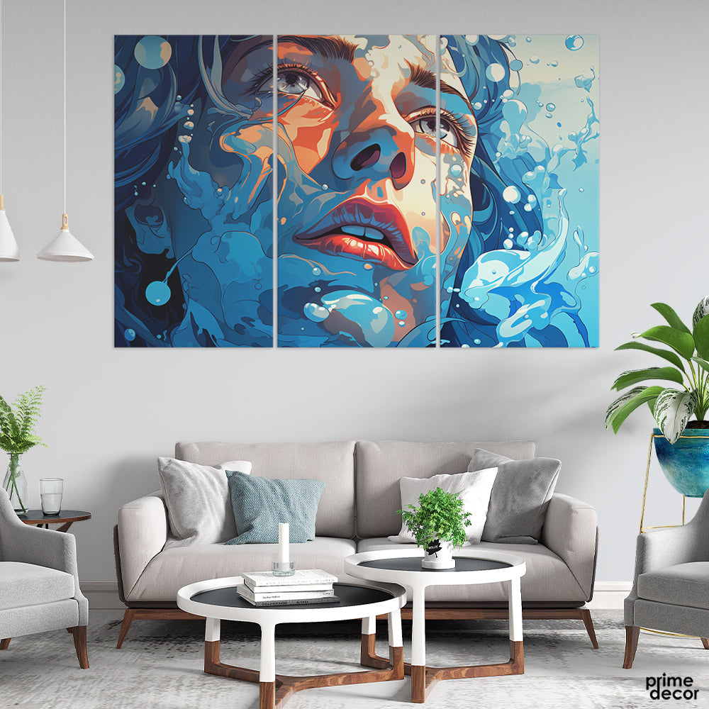 Beautiful Woman Face With Water Splashes (3 Panel) Fashion Wall Art