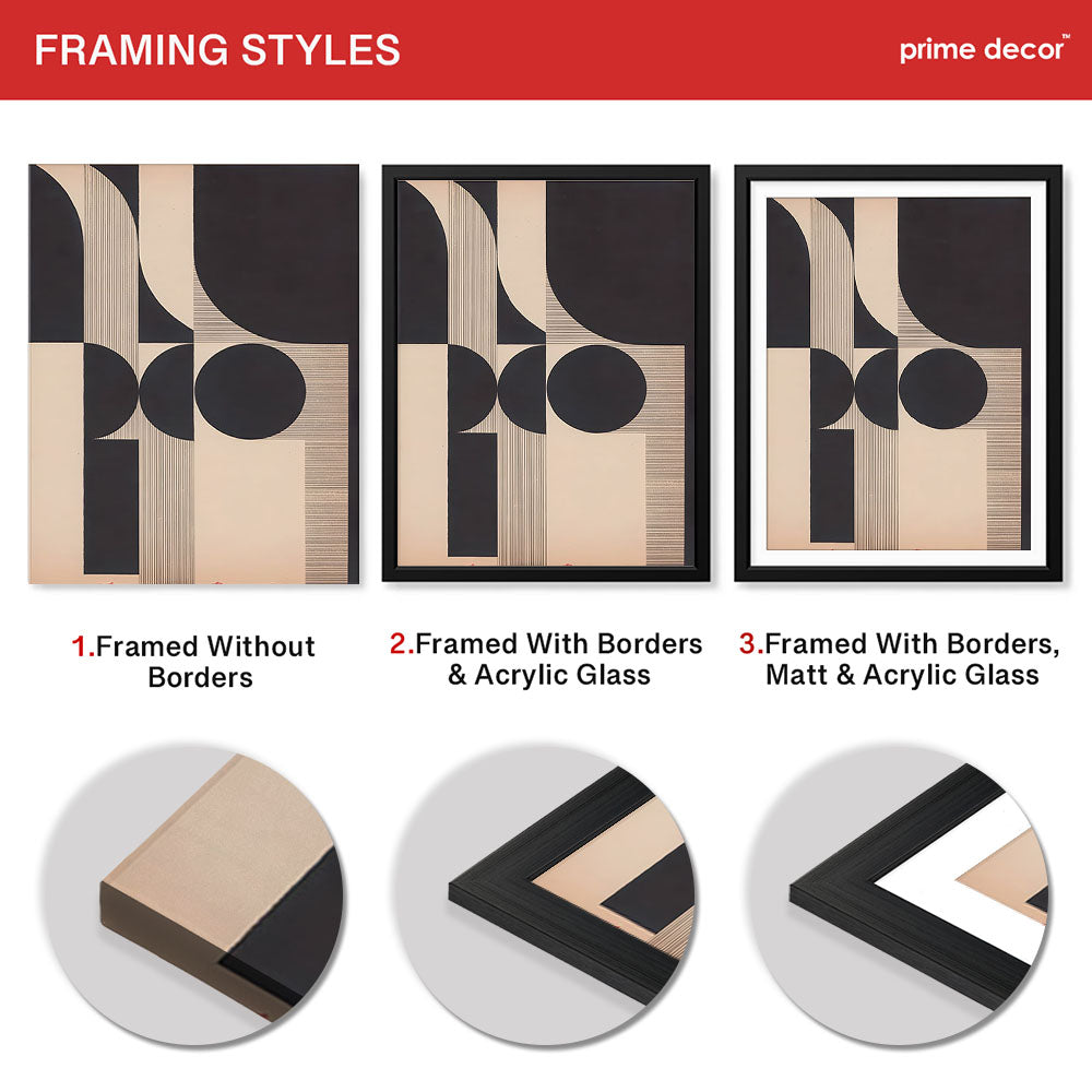 Black & Beige Geometric Shape Artwork | Abstract Office Artwork #00519