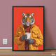 Casually Dressed Fashion Panther Having Coffee | Animal Wall Art