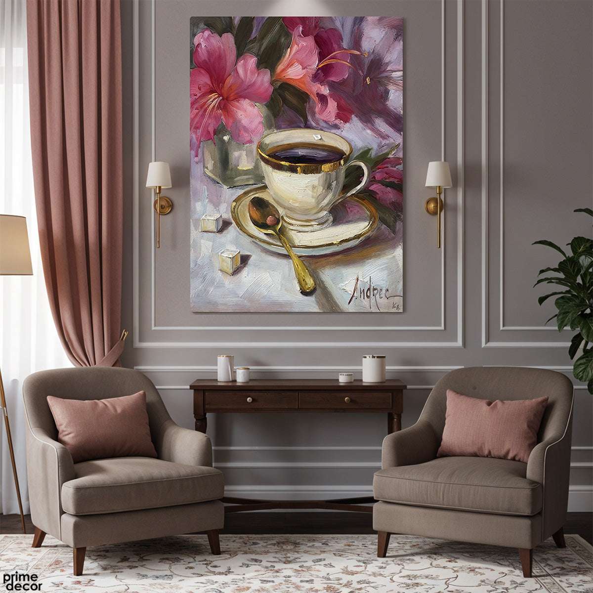 Still Life with Coffee and Lilies (Single Panel) Digital Painting Wall Art