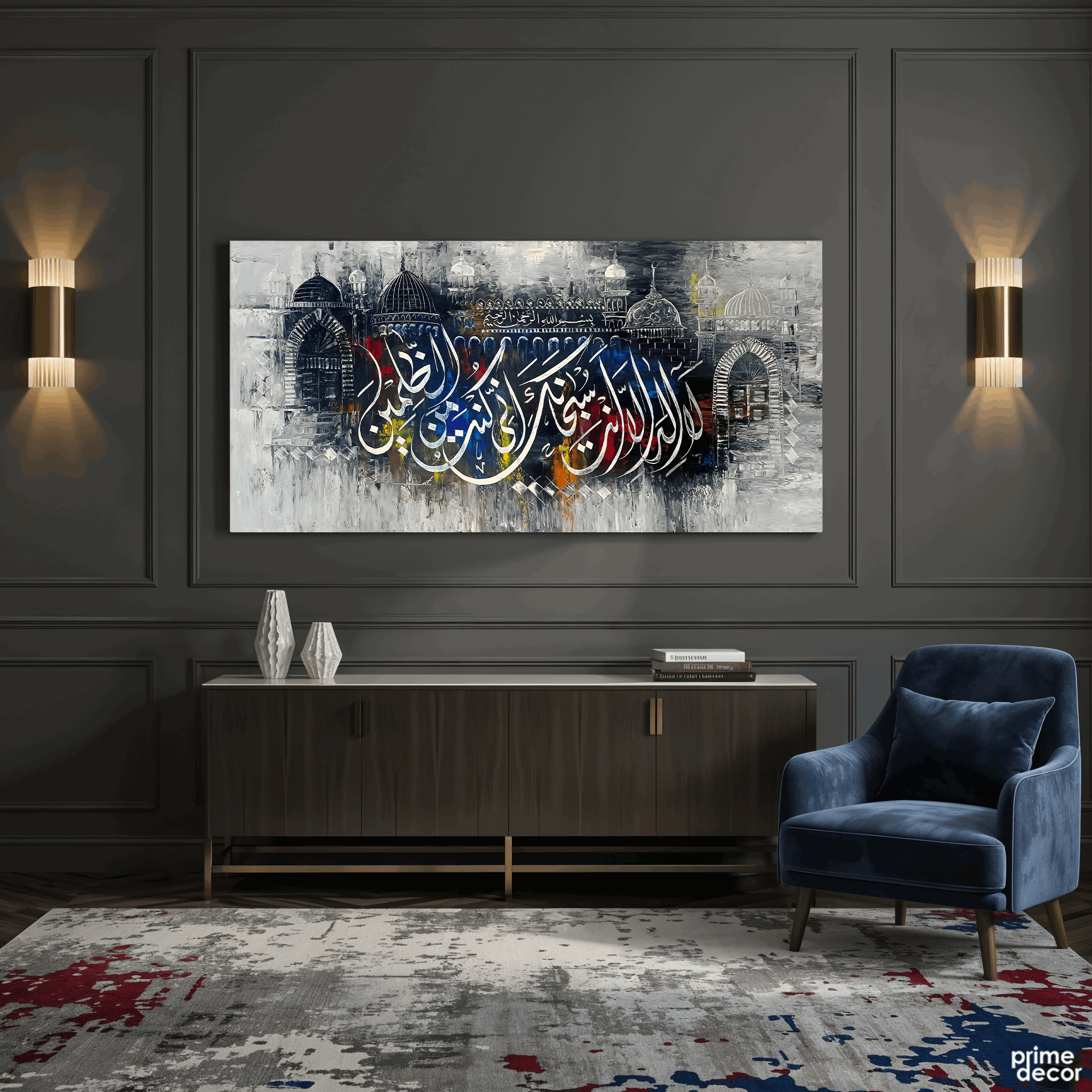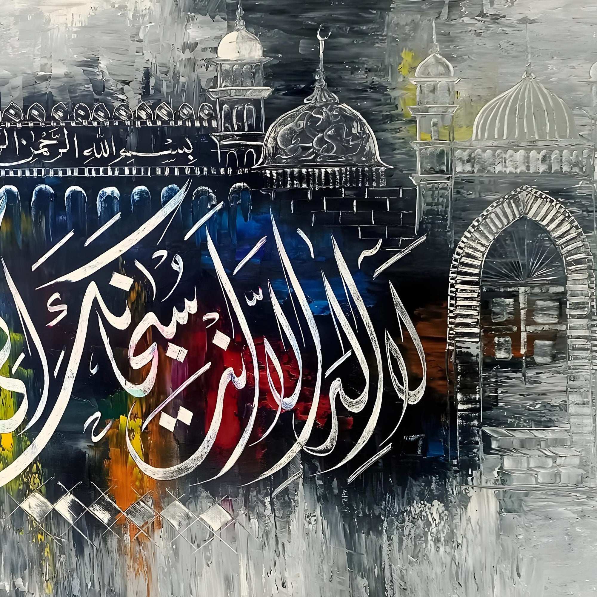 Prophet Yunus's Prayer Calligraphy Mosque Grey Abstract Handmade Painting