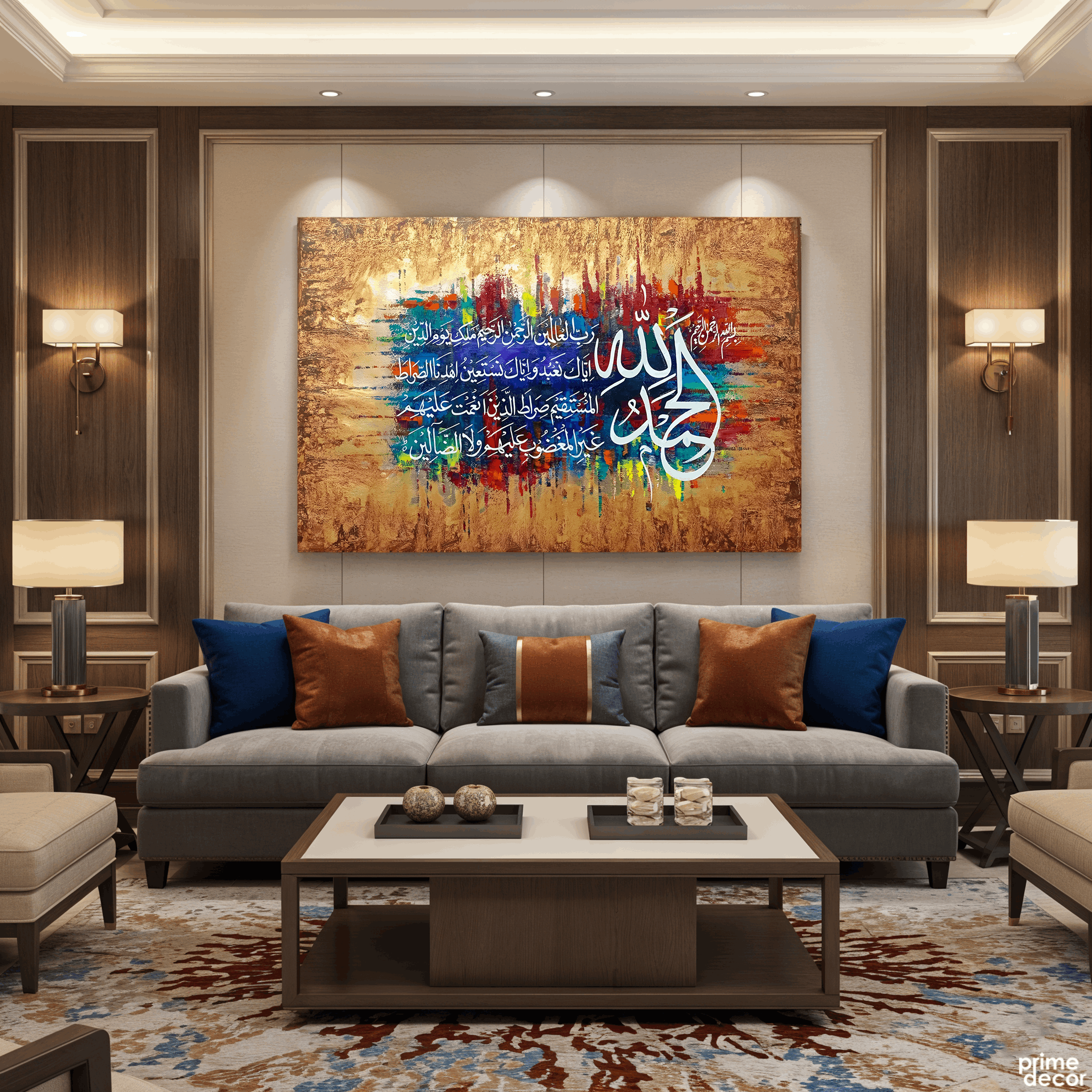 Surah Al-Fatiha Abstract Gold and Color Calligraphy Handmade Painting