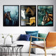 Abstract Black Gold & Orange Grey Geometric Artwork (3 Panel) Abstract Wall Art
