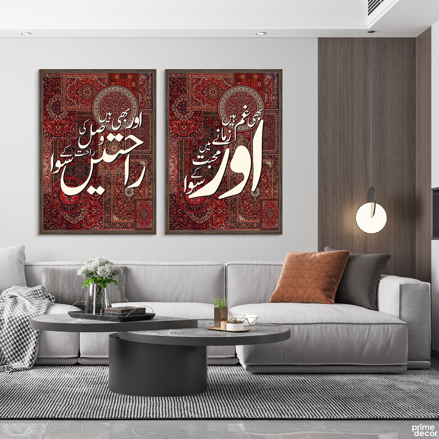 Aur Bhi Gham Hein Zamane Mein - Urdu Typography On Turkish Rug Background (2 Panel) Poetic Wall Art