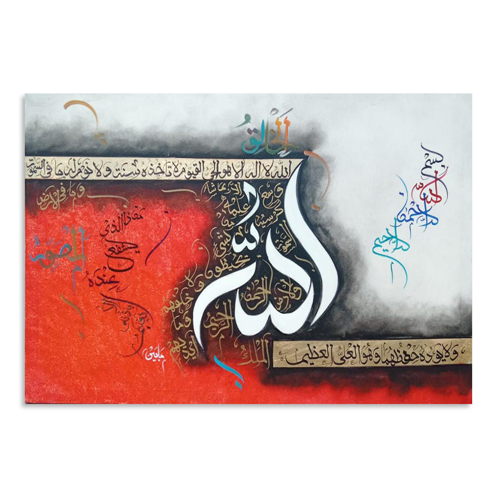 Ayatul Kursi Calligraphy Bin Qalandar Inspired Red & White | Handmade Painting
