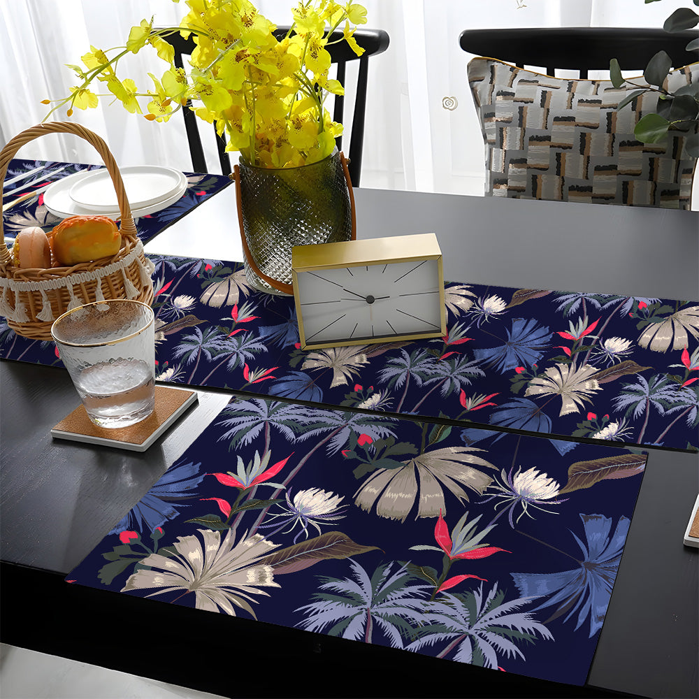 Denim Blue & Purple Palm Trees Pattern | Table Runner and Placemat Set