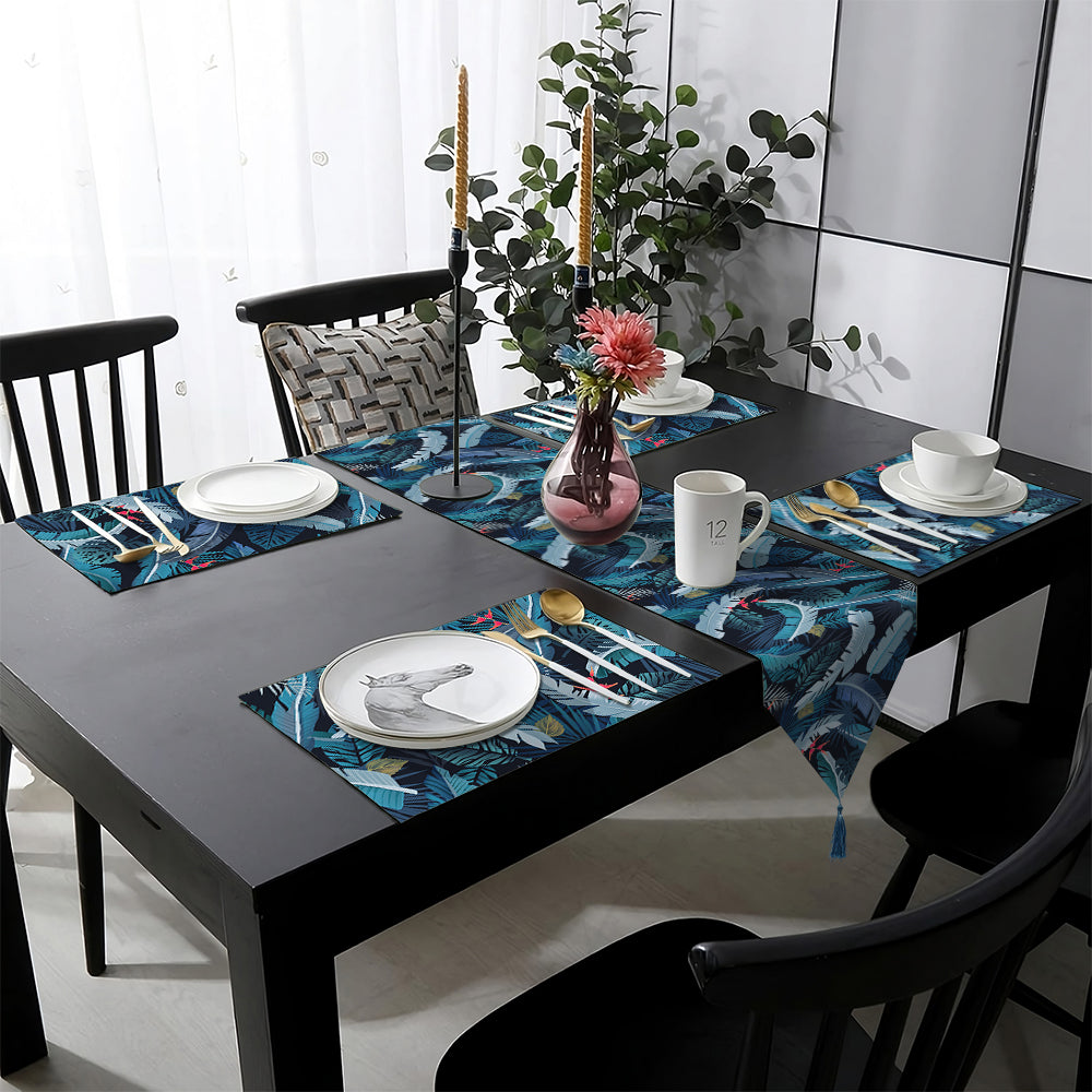 Faded Jade Blue Exotic Tropical Leaves | Table Runner and Placemat Set