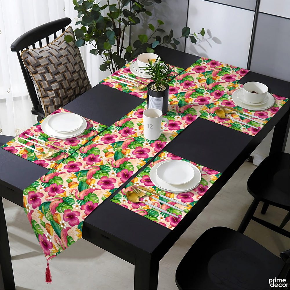 Pink Flamingos With Pineapples & Hibiscus Flowers | Table Runner and Placemat Set