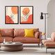Sunrise Orange Blobs With Tropical Leaves Line Art (3 Panel) Nordic Wall Art