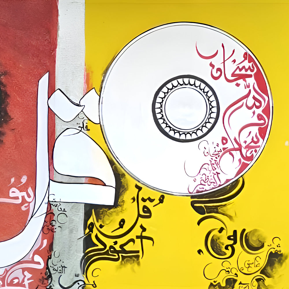 Surah Ikhals & Surah Falaq Bin Qalandar Inspired Yellow & Faded Red | Handmade Painting