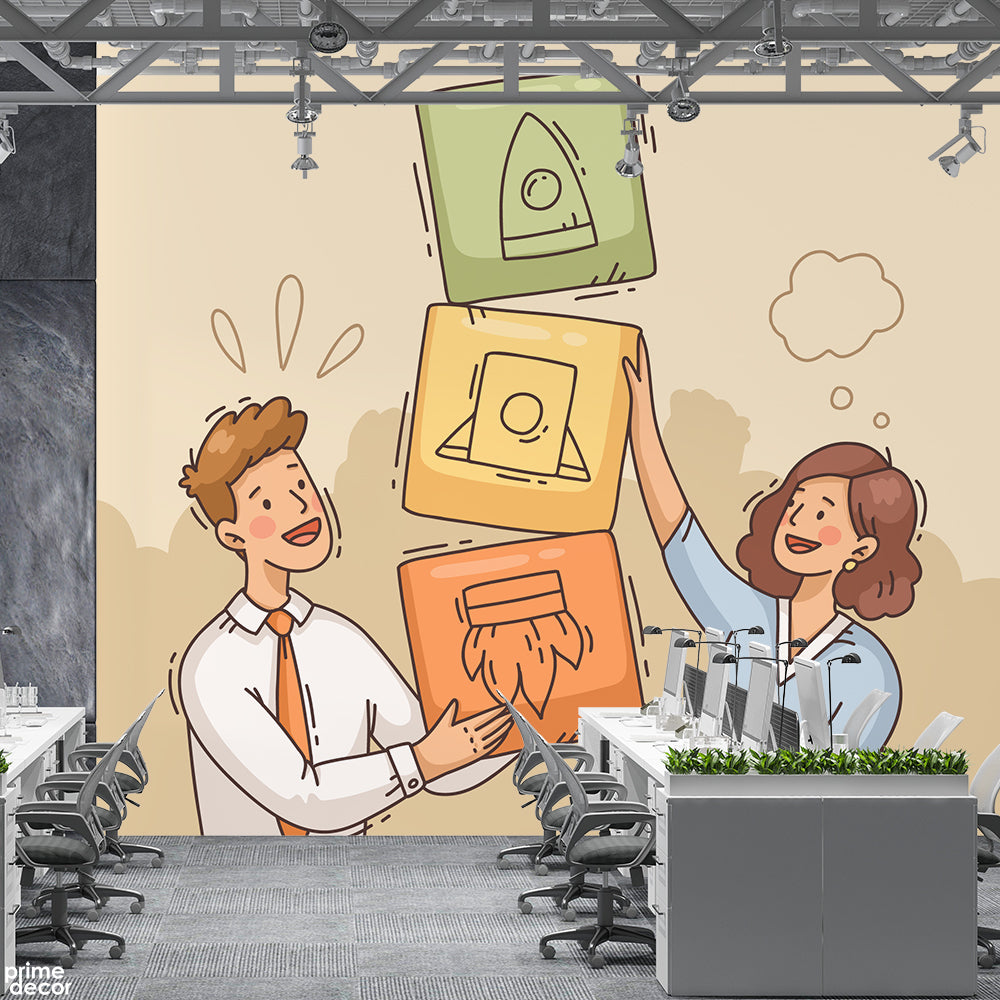 Aligning Boxes To Achieve New Heights Artwork | Office Wallpaper Mural