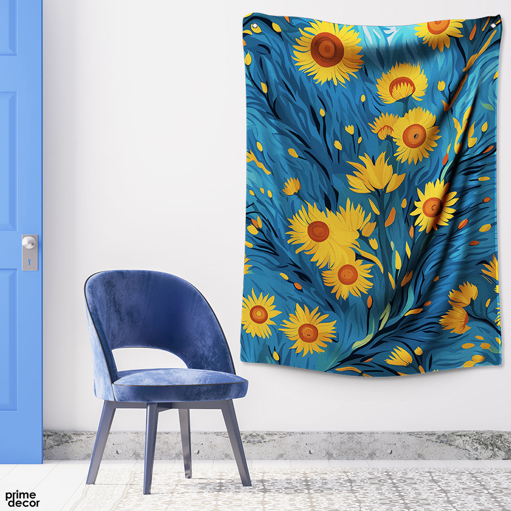 Beautiful Sunflowers Over Blue Background| Floral Tapestry