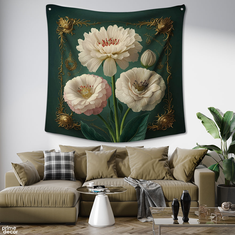 Beautiful White Flowers With Green Leaves | Floral Tapestry