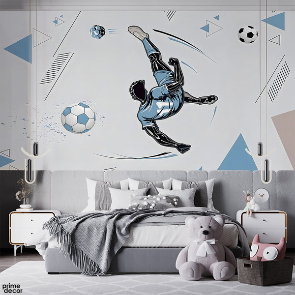 Soccer Player Hitting Goal With Abstract Geometric Shapes | Sports Wallpaper Mural