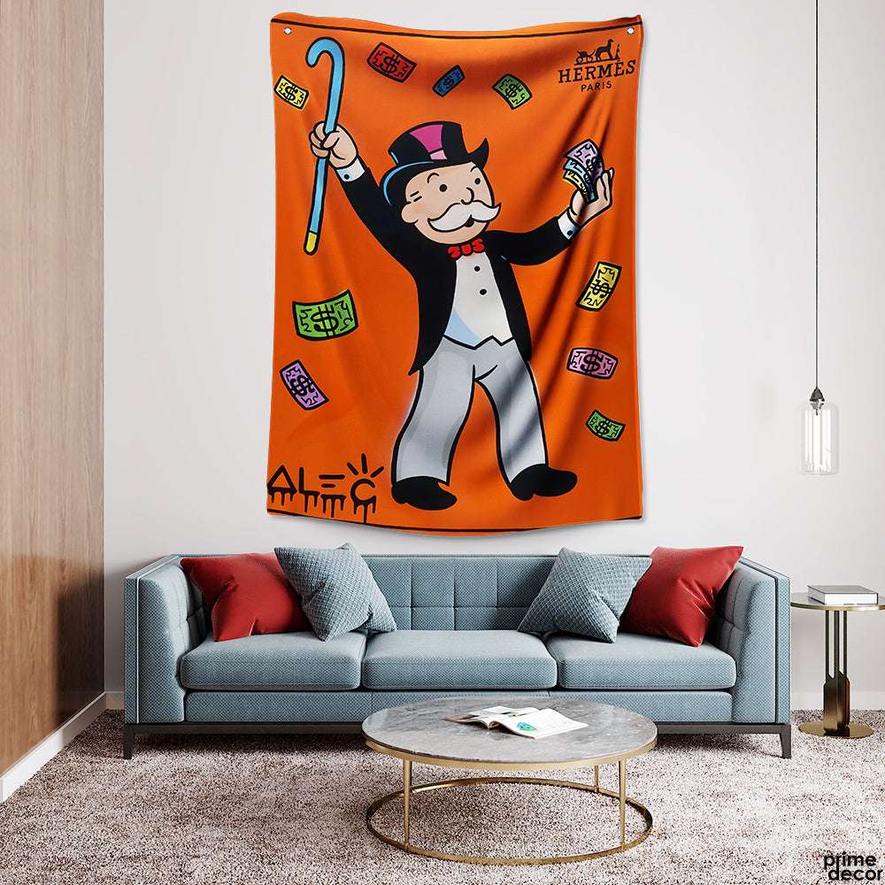 Hermes Monopoly Holding Up Colorful Cash | Fashion Tapestry