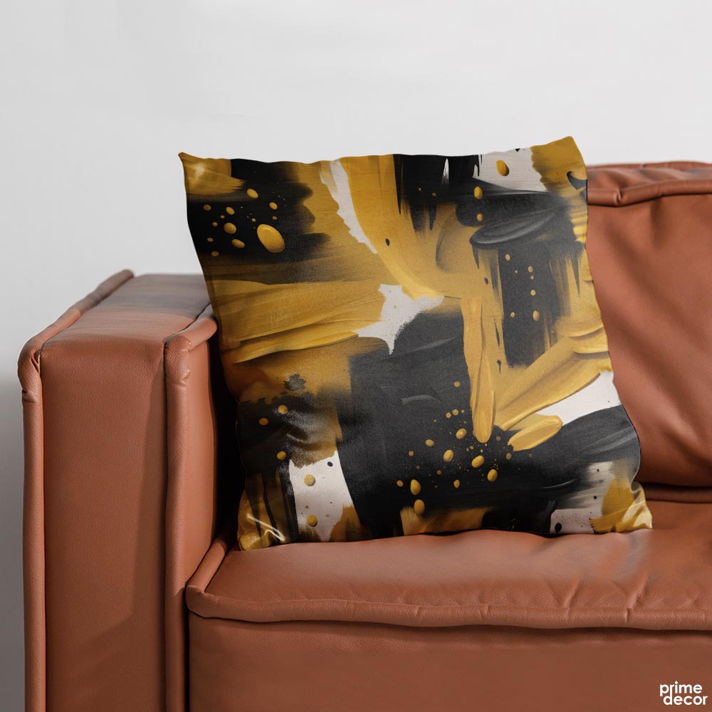 Abstract Black & Gold Color Splash Artwork | Abstract Cushion #507