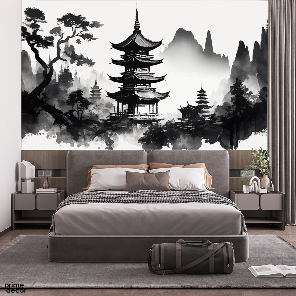 Abstract Black & White Japanese Style Artwork | Nature Wallpaper Mural