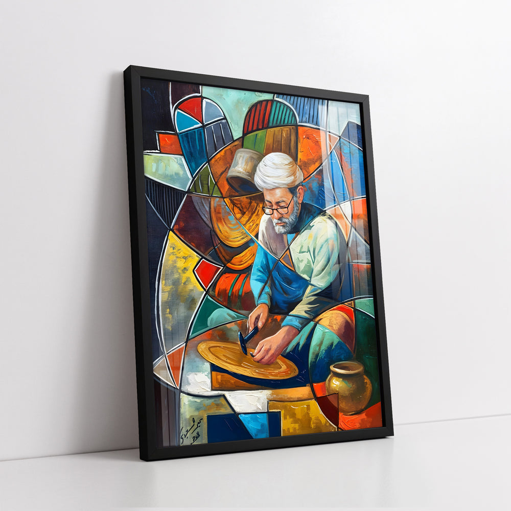 Abstract Copper Artisan with Geometric Stained Glass Background (Single Panel) Digital Painting Wall Art