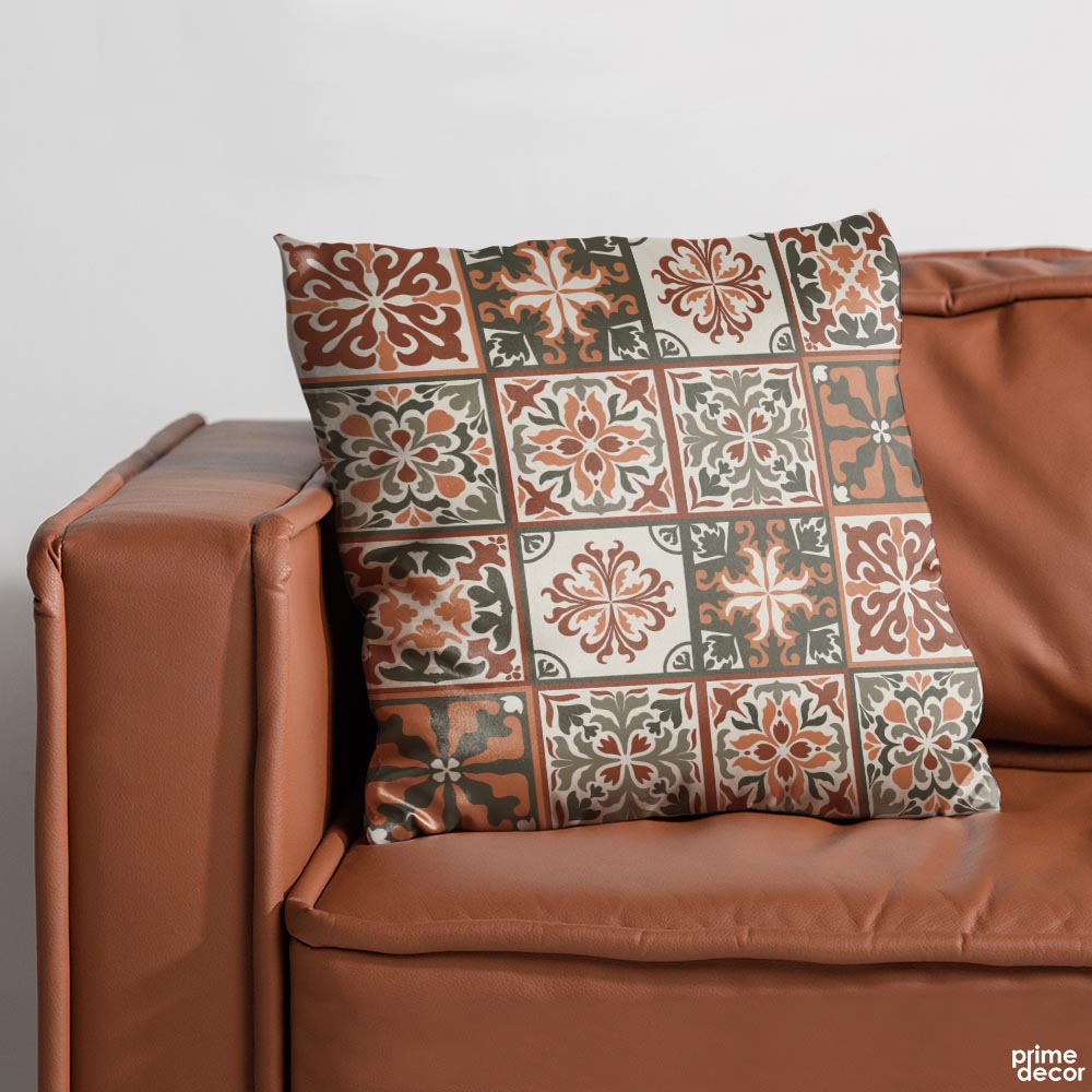 Abstract Cultural Dark Floral Artwork Over White Background | Floral Cushion #500