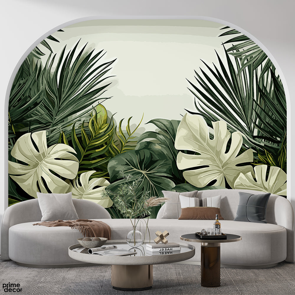 Abstract Green Exotic Leaves | Floral Wallpaper Mural