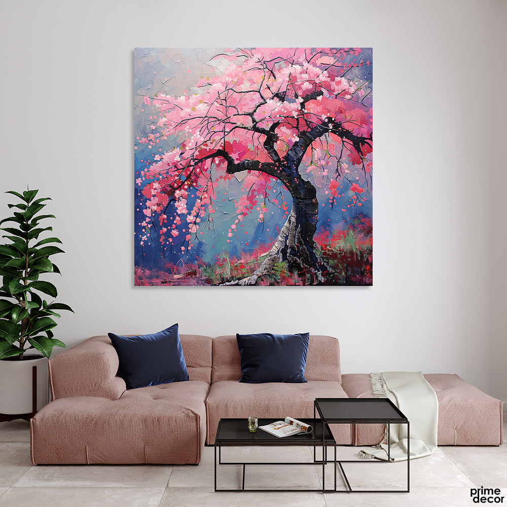 Abstract Tree With Beautiful Pink Flowers (Single Panel) Floral Square Wall Art