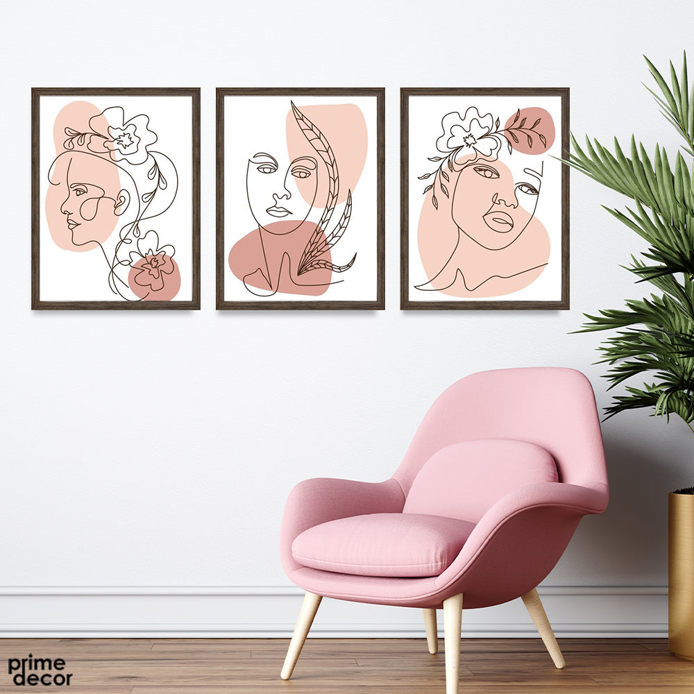 Abstract Women Face Pencil Artwork Design (3 Panel) Fashion Wall Art