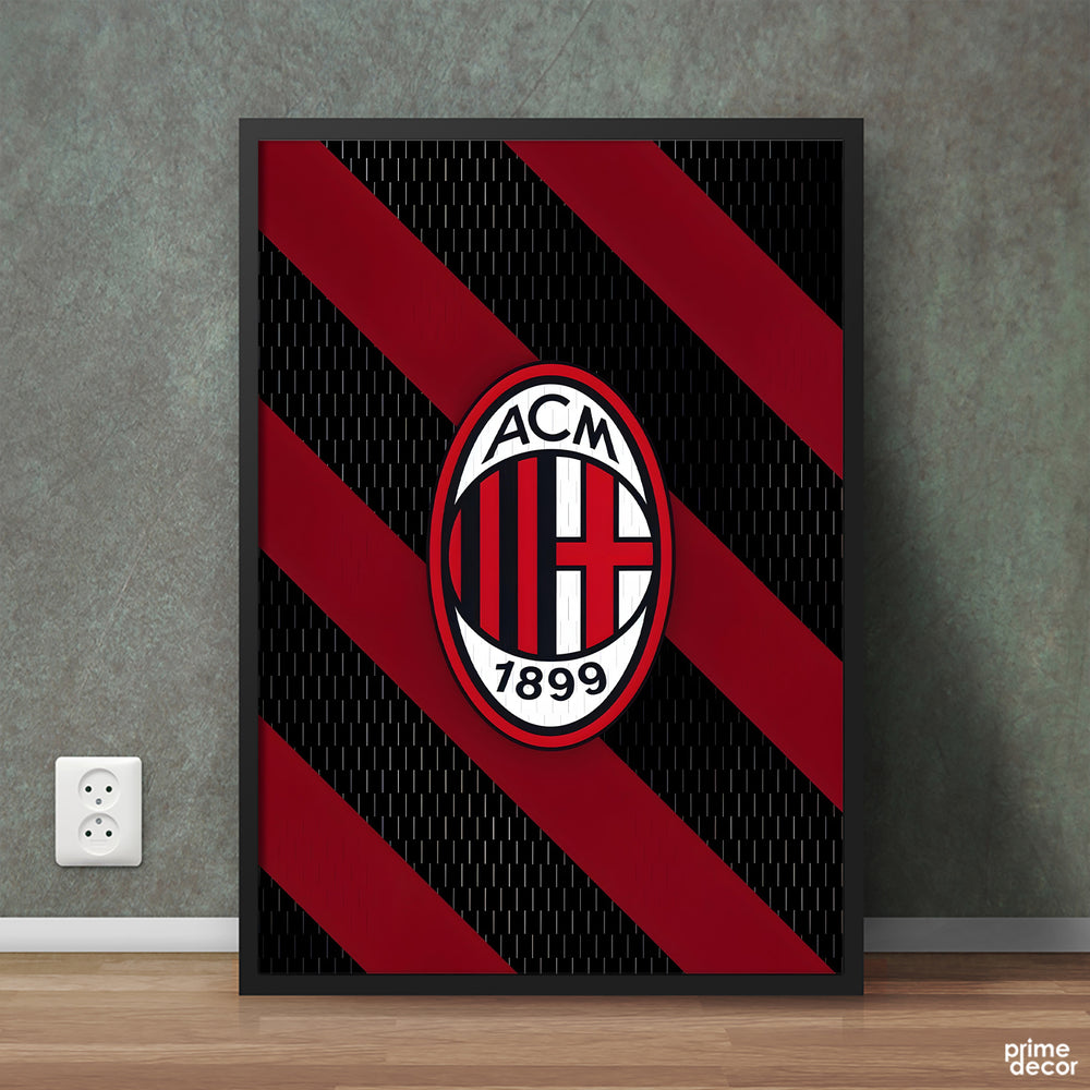 AC Milan Rossoneri Crest With Stripes Background | Poster Wall Art