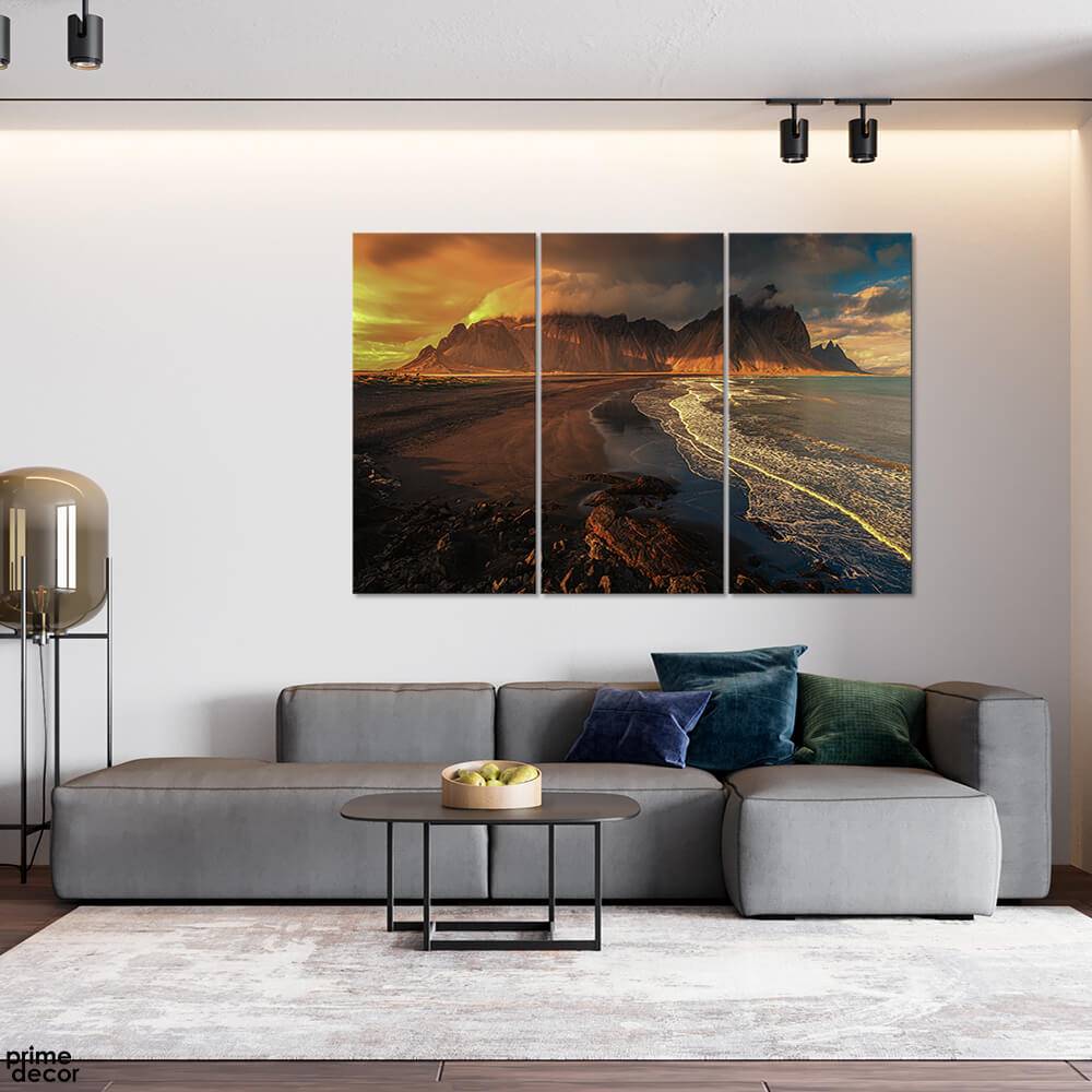 Aerial beautiful shot seashore with hills (3 Panel) Landscape Wall Art