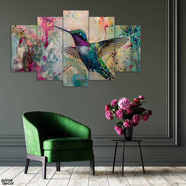 Beautiful Artwork Of A Bird With Aesthetic Colorful Background (5 Panel) Floral Wall Art