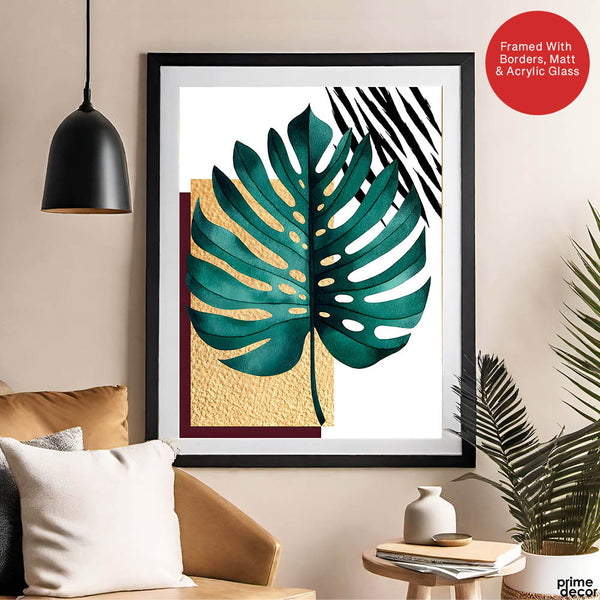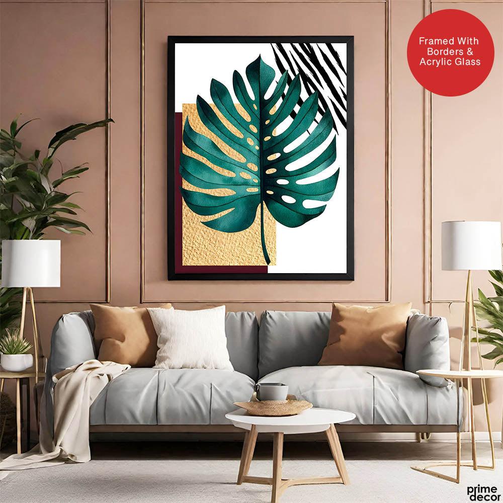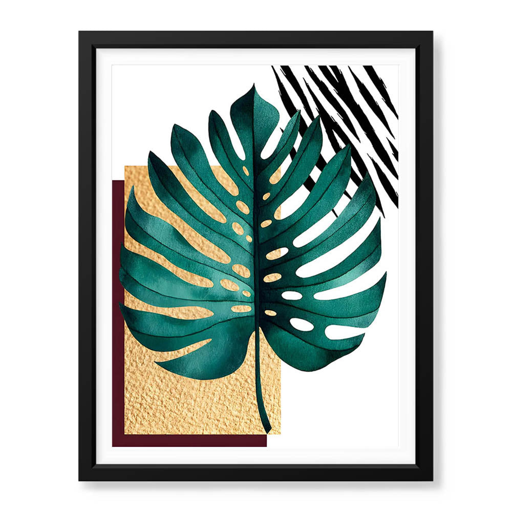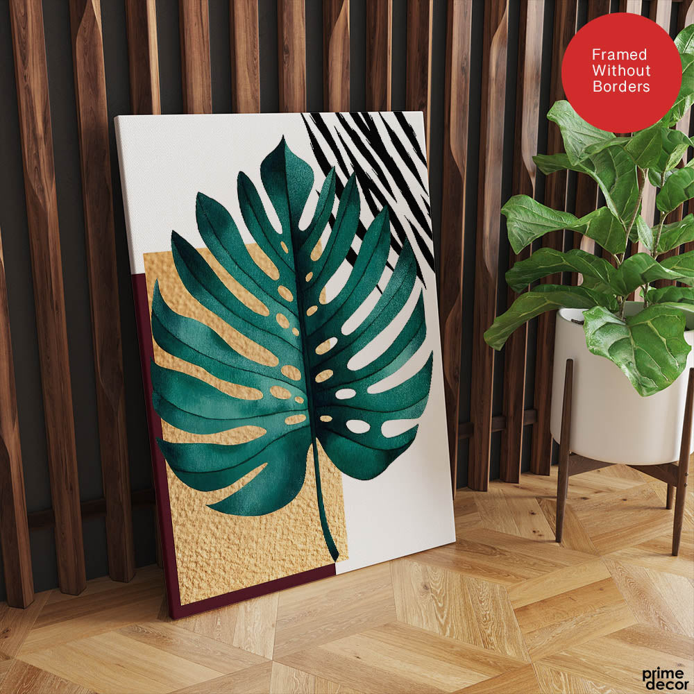 Beautiful Tropical Leave Over White & Black Background | Abstract Floral Artwork #00124