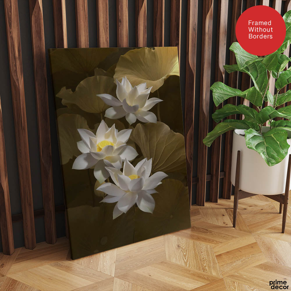 Beautiful White Lillies Over Green Background Floral Design | Abstract Floral Artwork #0063
