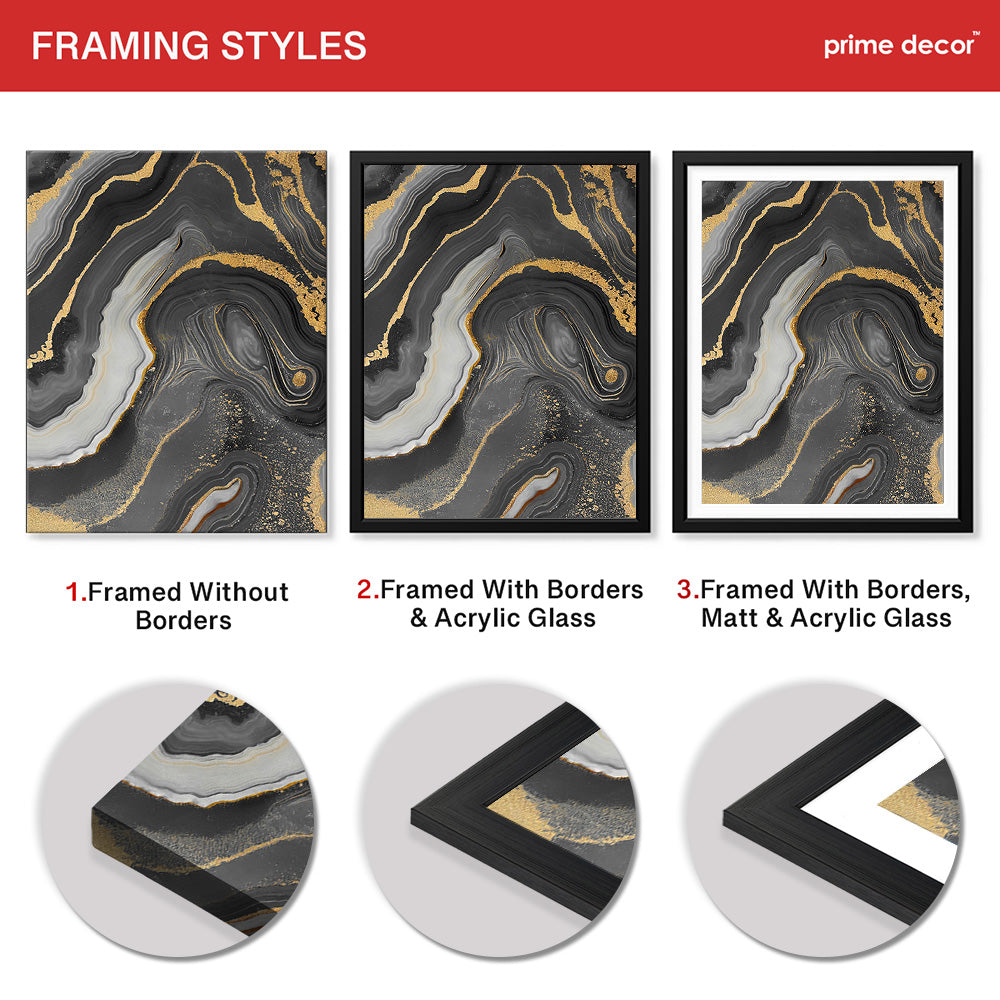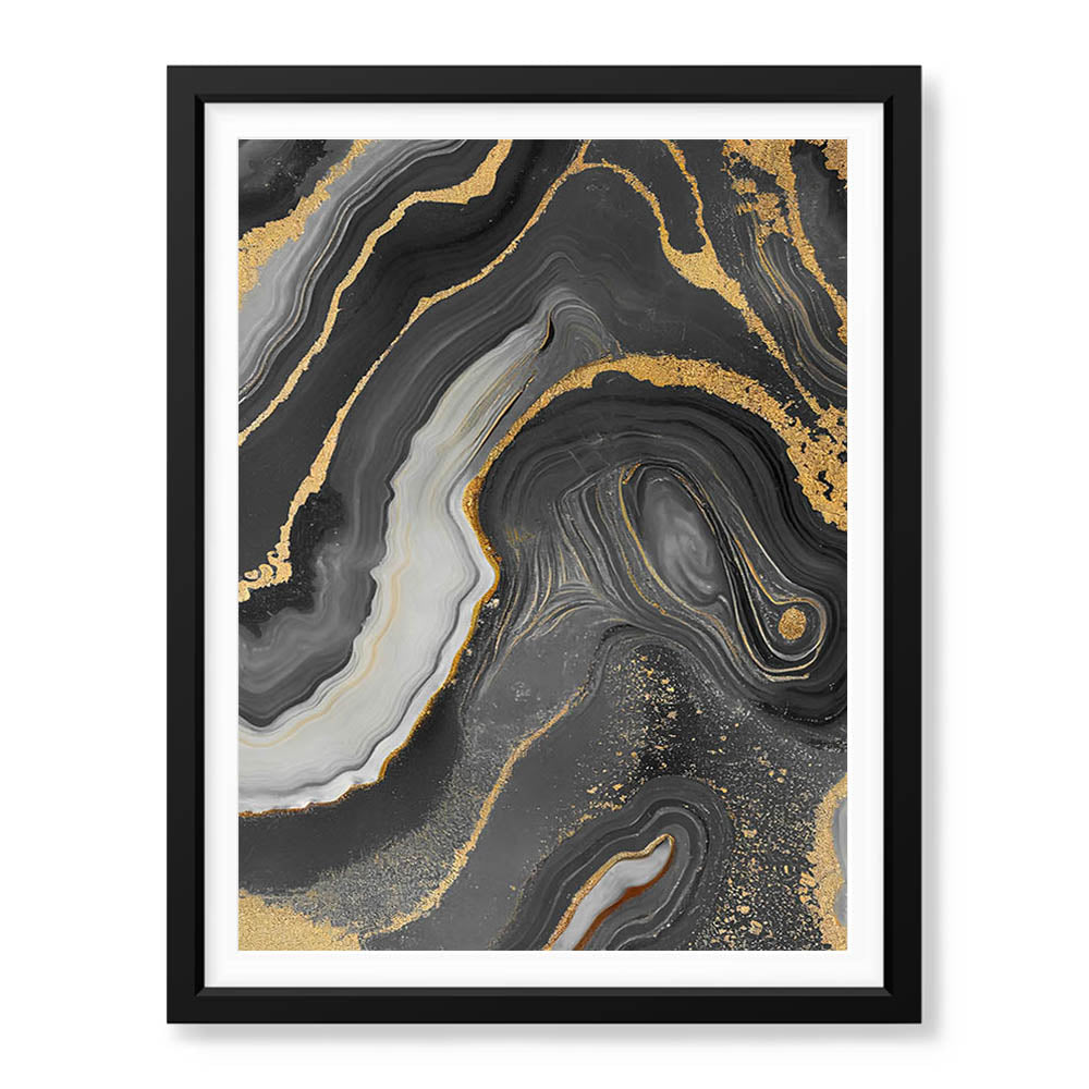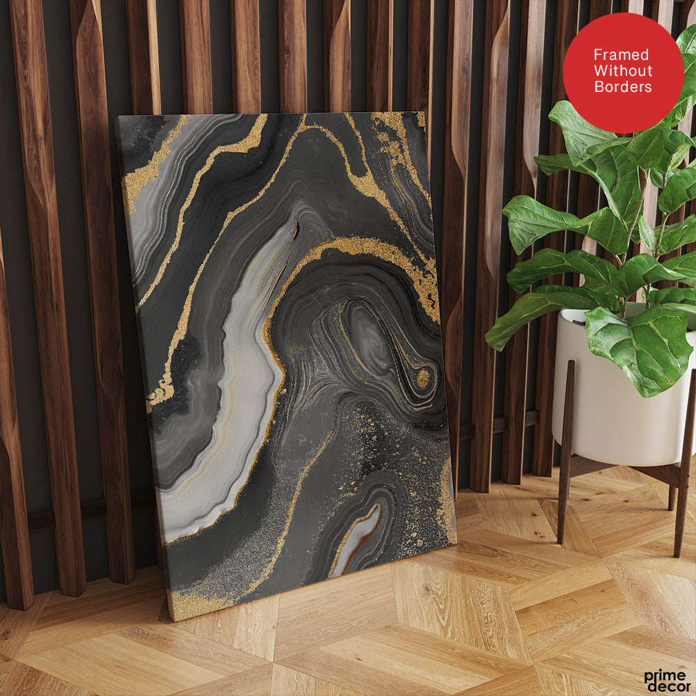 Black Gold & Grey Abstract Art Design Over White Background | Abstract Office Artwork #00486