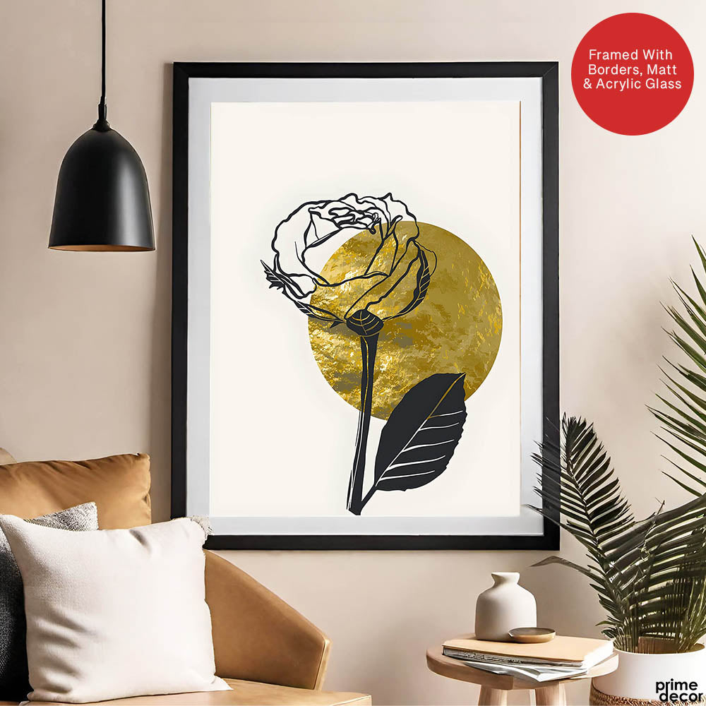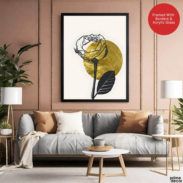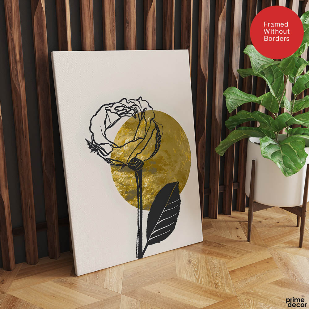 Black Rose Over Golden Moon Design | Abstract Floral Artwork #0062