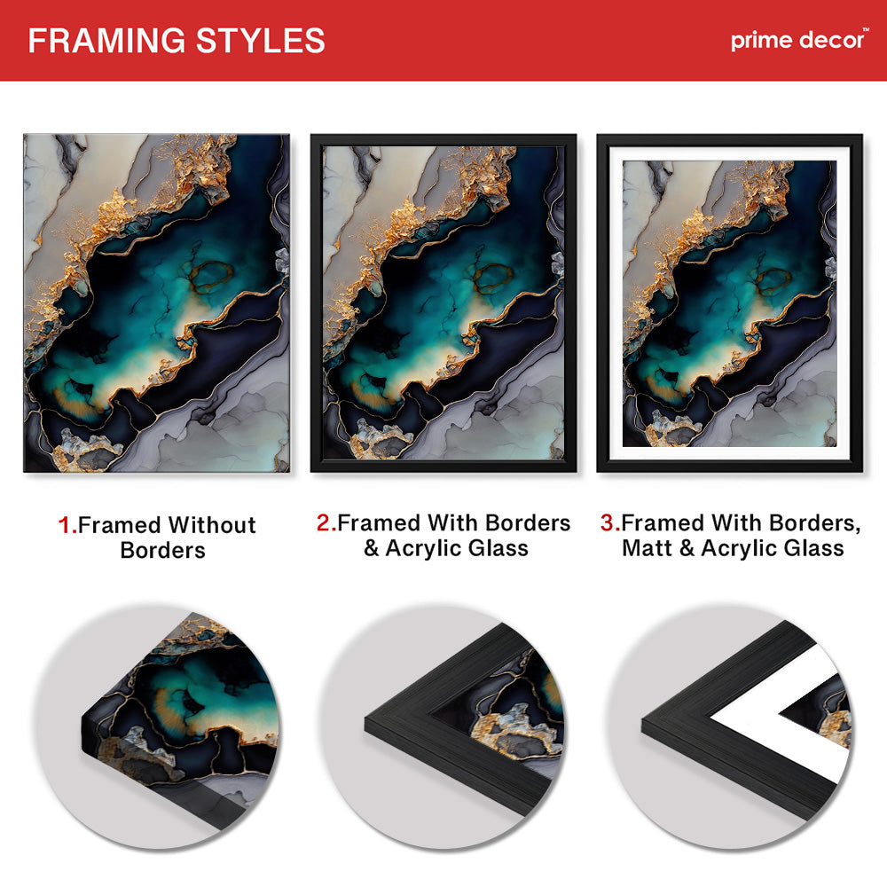 Blue & Green Abstract Art Over Grey Background | Abstract Fashion Artwork #00330