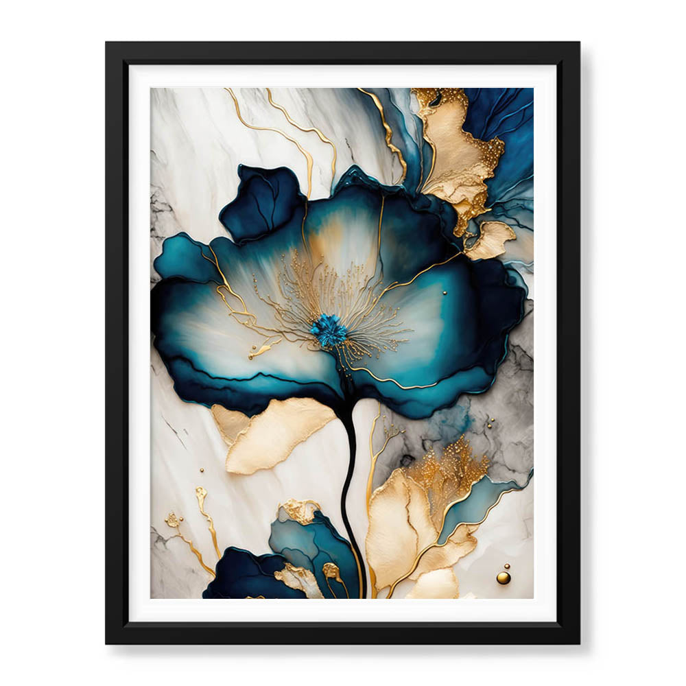 Blue & Green Abstract Floral Art Over Grey Background | Abstract Floral Artwork #00331
