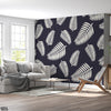 Charcoal & Pale Exotic Tropical Leaves | Floral Wallpaper Mural