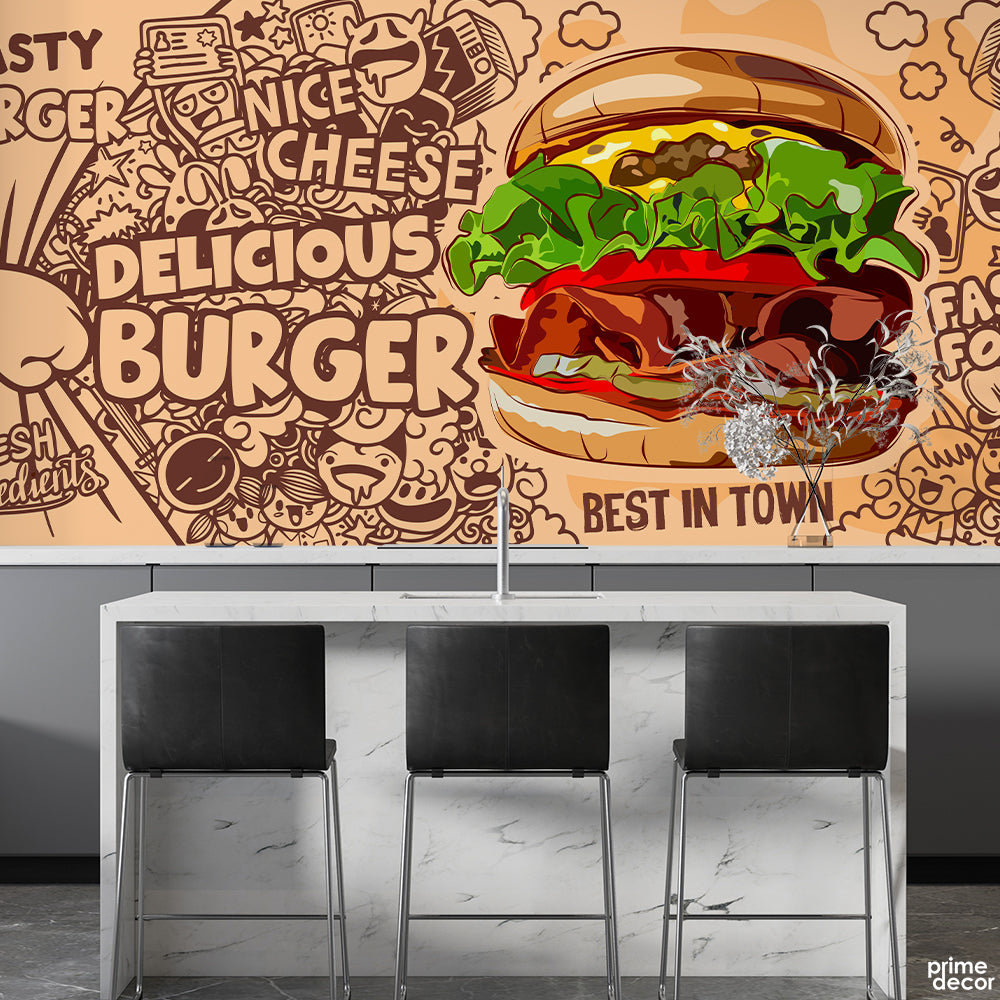Cheese Delicious Burger Best In Town | Restaurant Wallpaper Mural