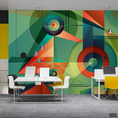 Colorful Greenish Abstract Geometric Shapes | Office Wallpaper Mural