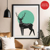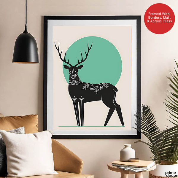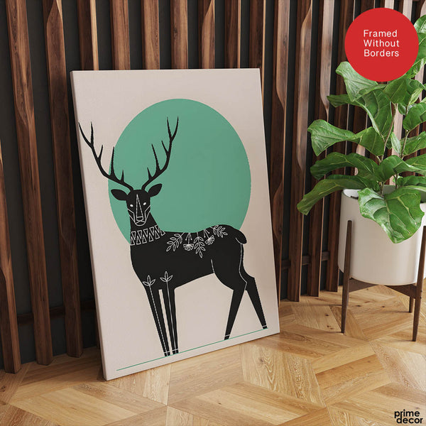 Deer With Beautiful Art Over Green & Beige Background | Abstract Animal Artwork #0076