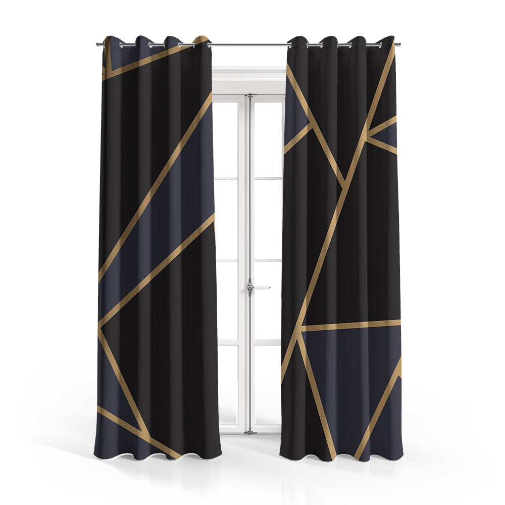 Elegant Black & Navy Blue Golden Foil | Abstract Curtains #123