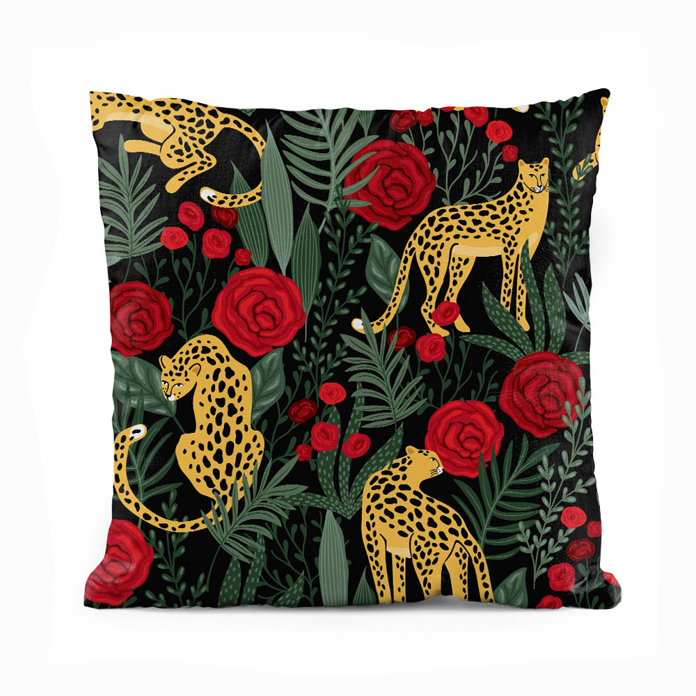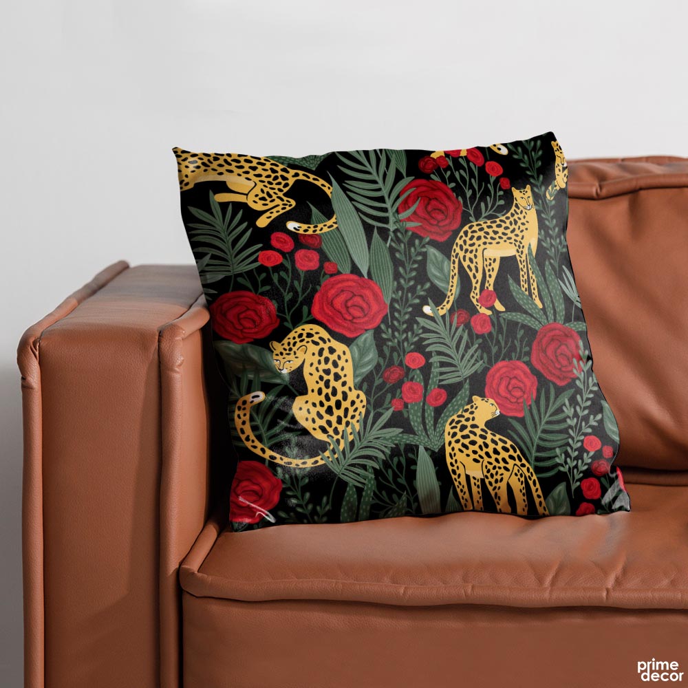 Exotic Green Leaves With Leopards Artwork | Floral Cushion #390