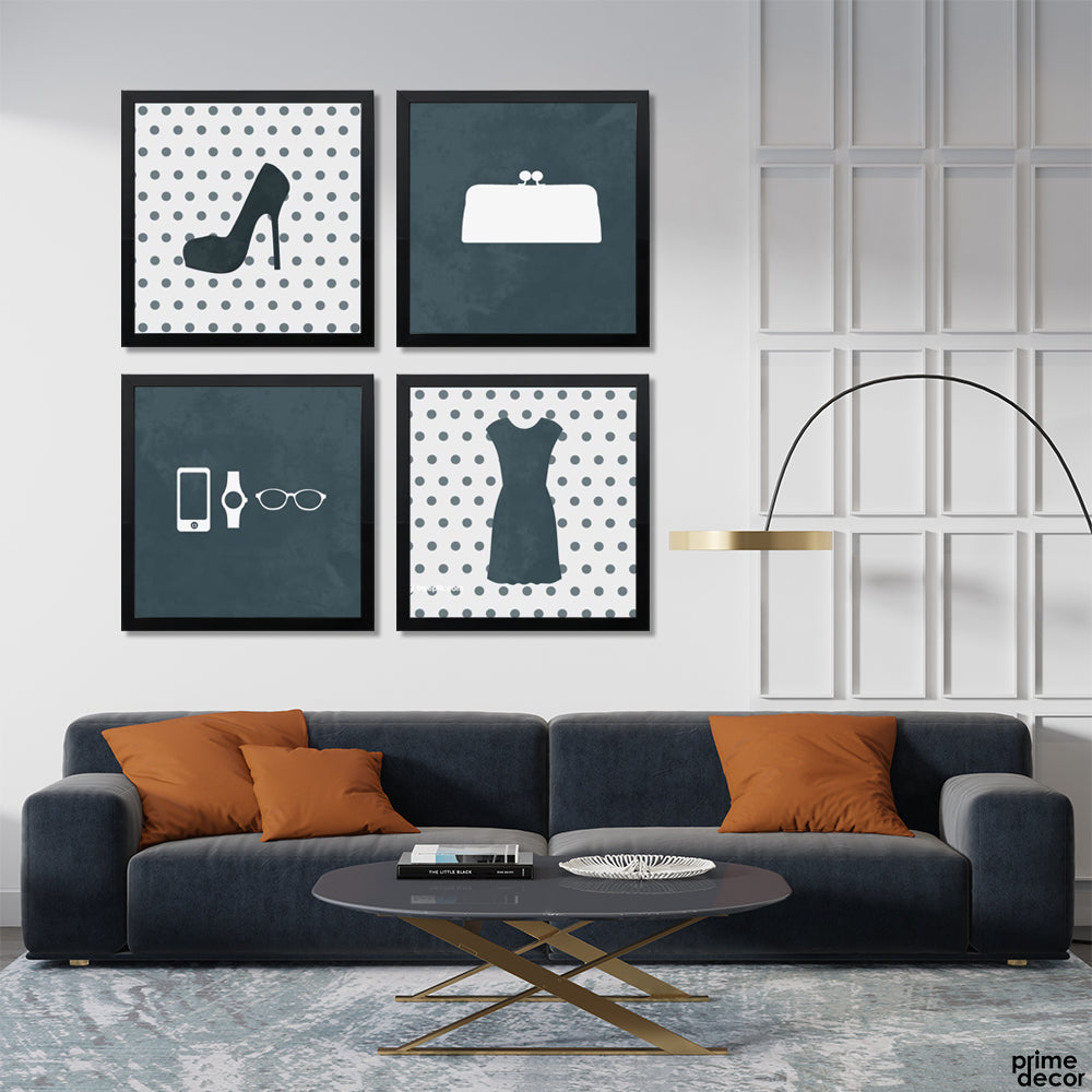 Gray & White Fashion Essentials On Polka Dots (4 Panel) Fashion Wall Art